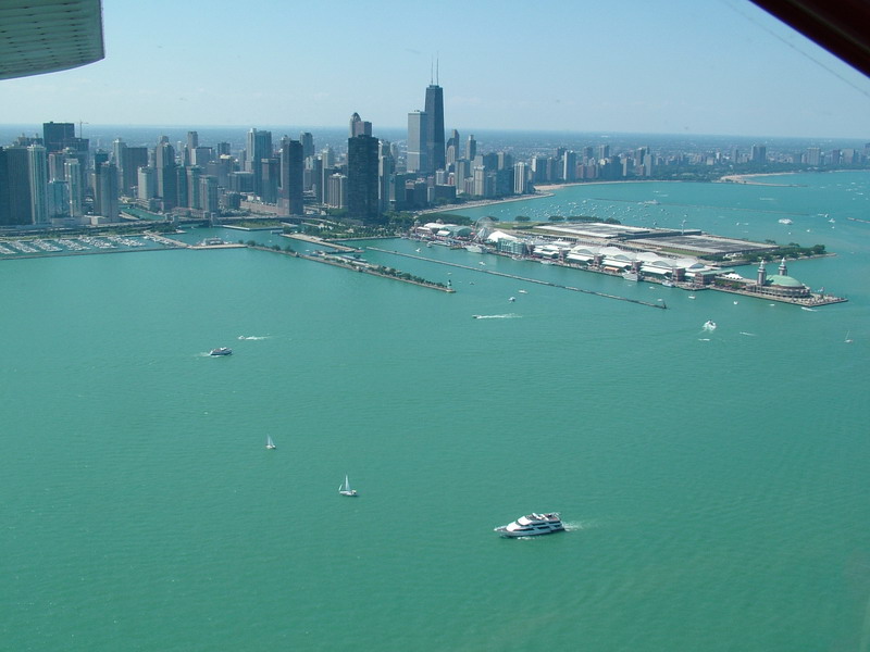 lake off shore down to Gary, IN, right past downtown Chicago, IL.