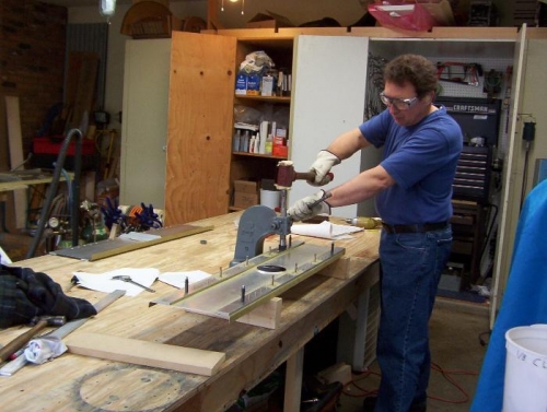 To celebrate my minor success, I decide to get a photo of me posing behind the assembled structural “guts” of my 601XL-to-be. While assembling, I was unable to find direction in the plans or manual about the way the twelve bolts connecting the outboard spars to the center spar should face. Does it matter if the bolt heads are on the forward or aft side of the spars? Should one alternate them? What about the bolt at the root of the outboard spars and the ones in the center spar (in the plans the latter appear to have the bolt heads on the forward side).