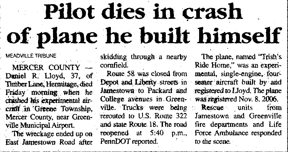 Couldn't get a decent scan of the picture- it was of the empennage, which looked sort of Zenith-ish. Don't think there are any 801's in our area but you can't trust the media to know the difference between a 2 seater and a 4 seater. One of the TV channels once said a crash at Dart airport in N.Y. was due to engine failure, and then showed footage of a glider!!