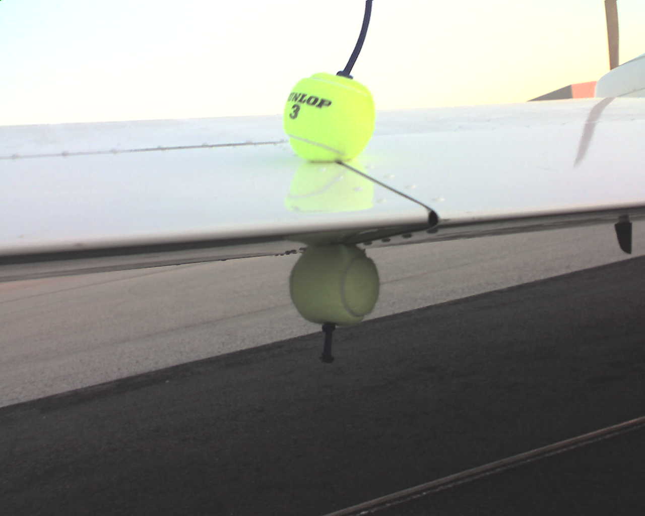 Now that i have your attention! see attached picture of my securing device for holding the ailerons flat at tie down time. You have to use a wood dowel design for the elevator since it is too heavy for the balls to hold up.