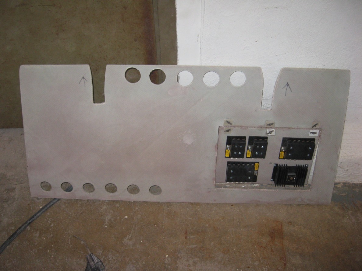 Pictures - What you are looking at is the avionics shelf for a Legacy. A simple but very strong piece of prepreg fiberglass with a Z-19 trap door added for maintenance access. The holes on the lower left are for accessing the back of B & C fast-on switches on the lower left front face of the panel. The larger holes in the rear are for all of the antennas, fuel lines, brake lines and whatever else runs up from the center of the cabin.