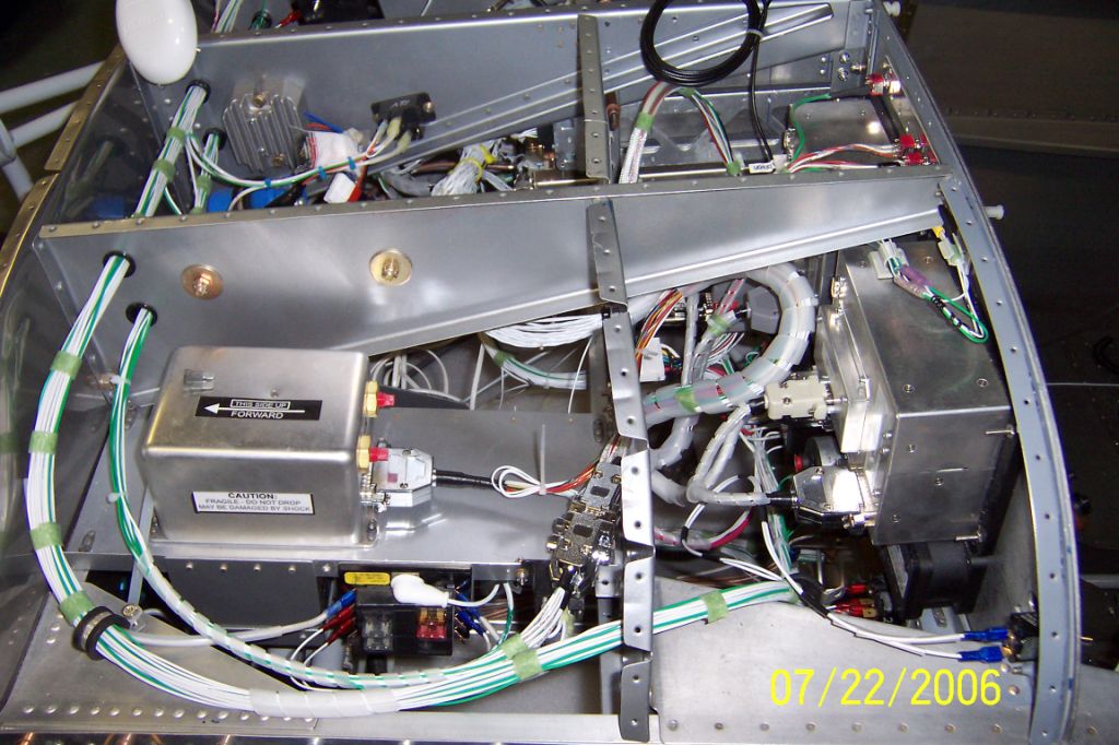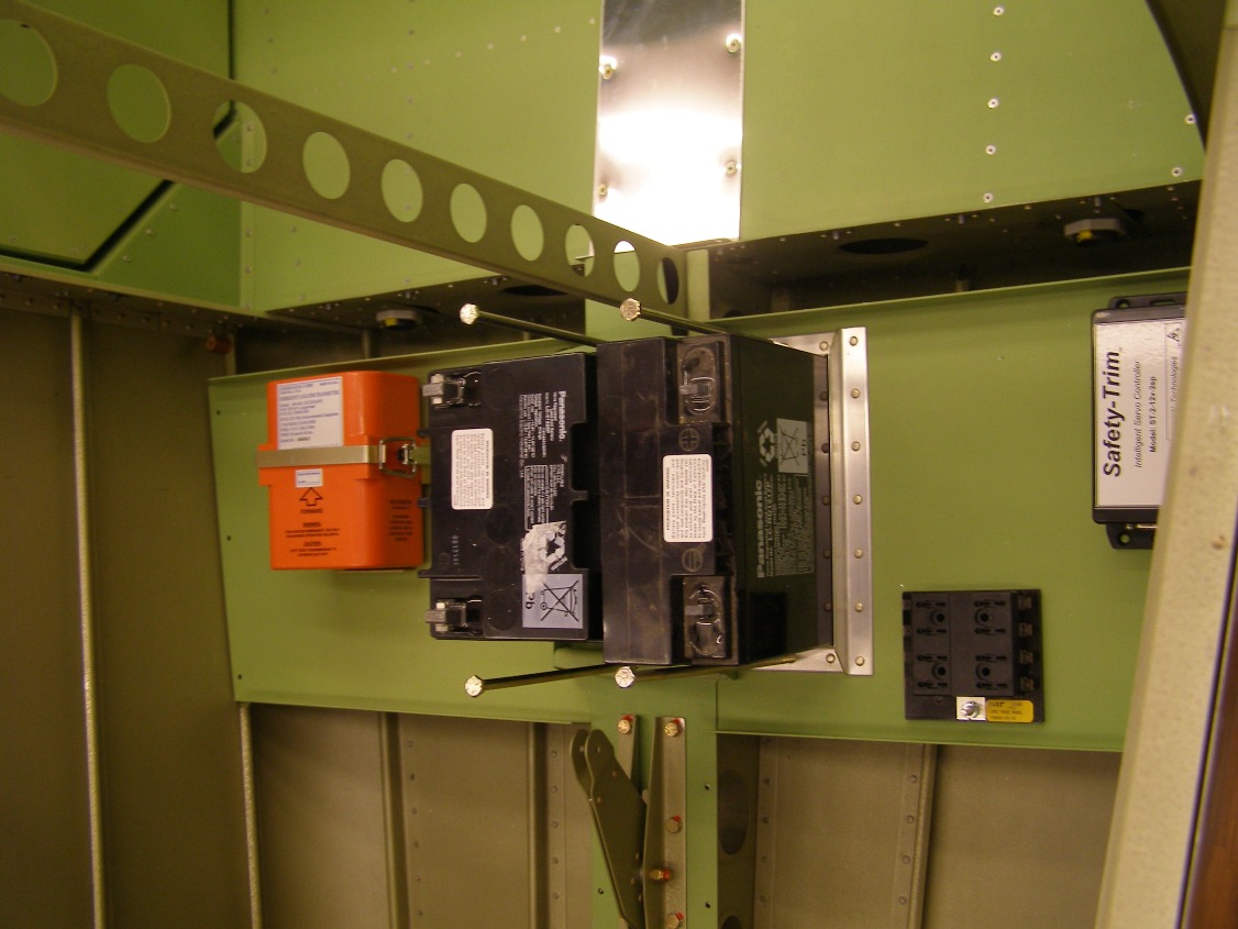 Here's by dual battery installation. I've built a pair of equipment shelves that attach to the Van's standard battery/ bellcrank center plate.