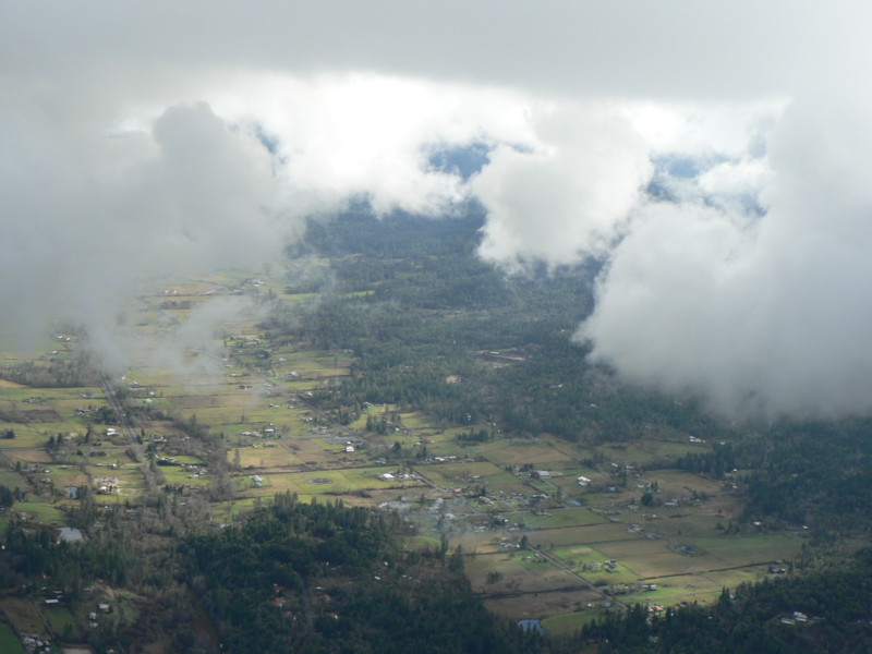 I finally found the top at 9000ft. It was quite cold but the view was worth it. There was an ocean of clouds in every direction. I could hear some air traffic at Roseburg (65 miles to the North) so there must have been a few other holes, but none close. The bright sun on those perfectly white clouds was breath taking. The top of Mount Shasta (95 miles to the South) was sticking up like an island. I floated around and took pictures for half an hour or so and then retreated to warmer air down below. I had a blast doing steep turns around some small isolated