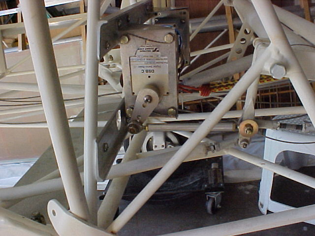 I checked out a few servo installation including a picture from Trutrak. Not so happy with any. I mounted mine behind vertical tubing aft of the seat. The simple mount allowed me to attach short servo rods. Okay, I did weld a couple mounting tabs and one tab onto pivoting support tube for the elevator tubing.. If the pHoto's don't come through e-mail me direct. michaega(at)verizon.net (michaega(at)verizon.net)