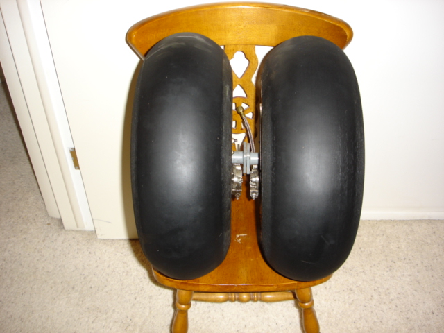 FOR SALE: $175.00 FOB Ogden, UT - One set of 20x700x8 Cheng Shin tires with tubes mounted on ATV wheels complete with Matco brakes and Grove axels that fit the Grove landing gear. The tires were ATV tires and the knobs were removed.