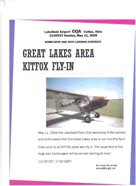 Dont forgett ::the Great Lakes Area-Kitfox Fly In////when:Sunday,May
