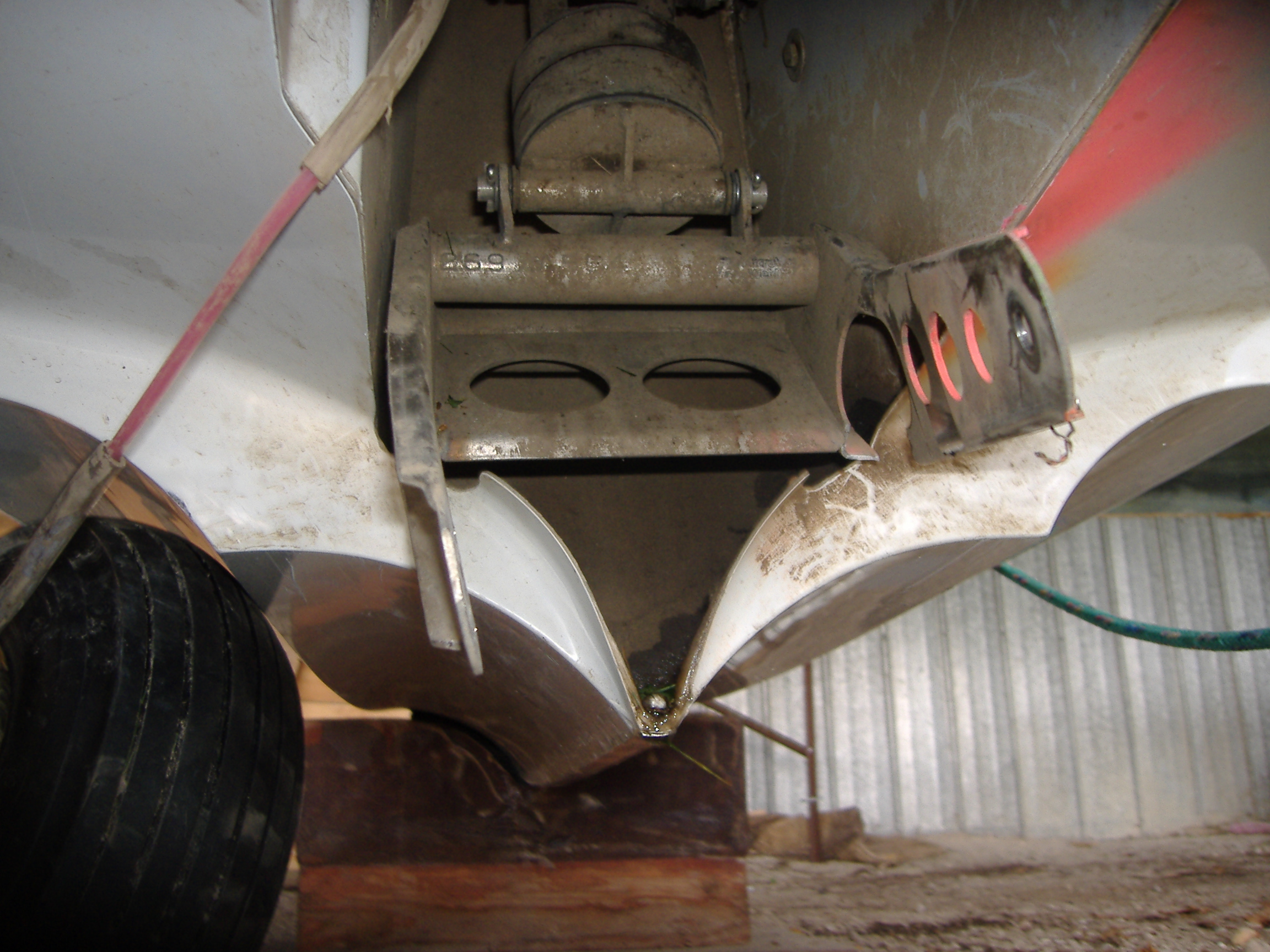 Louie- sent you a PM. I have the channel style gear legs and was going to weld four SS plates to the arms for reinforcement (see attachment). Before I do, however, I'd be interested in seeing a pic of your 'boxed' style leg if you have one handy. Was this a oem improved part or user mod? Thanks, Doug