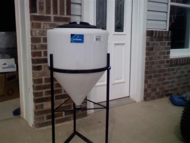 | New Tank on stand with valve at bottom. |