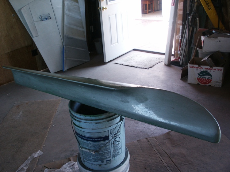 The first few photos deal with the shaping portion. I think it is the first photo that shows how I made Magic Marker lines to show the contour lines.The last couple reflect the PVA coating on the right tip. (The left one already has the PVA coating, and two coats of gel coat).