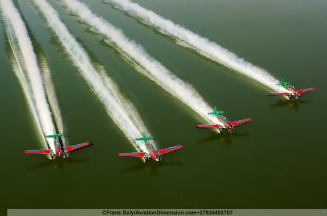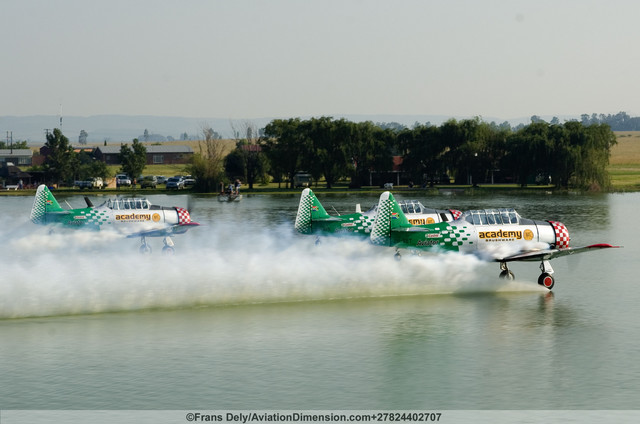 The pics which should have accompanied it showed 4 T6`s apparently landing on water with each one trailing a wake. The second shot taken from water level showed that there were no floats but each T6 was just touching the surface of the water with its wheels. All part of a South African display teams show which has just been cleared as `safe` by the authorities. That reall is accurate flying.