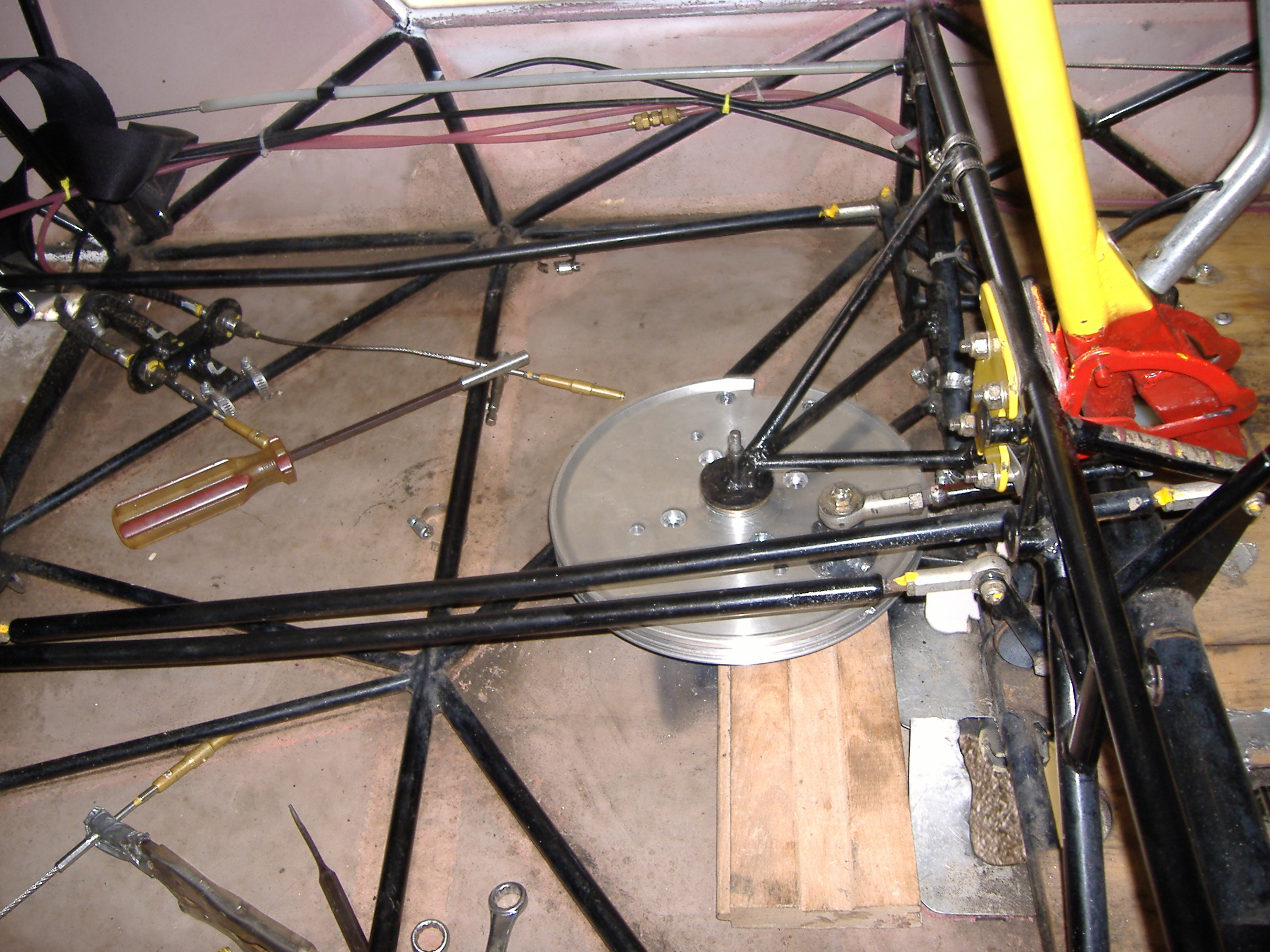 | Quote: | I built a platform to mount the johnson bar, double pully, etc. With everything hooked up, I can cycle the gear up and down, and I think that I finally got all the timing correct.