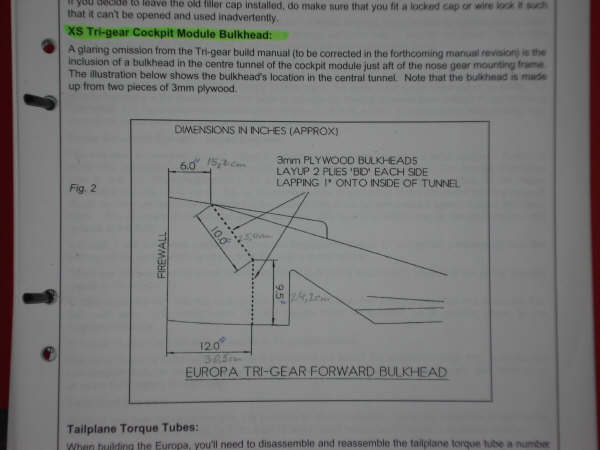 I have followed up your enquiry re the bulkhead on Tri Gear Europas with Roger Bull at the factory.  It would seem there has been a bit of lack of joined up action.