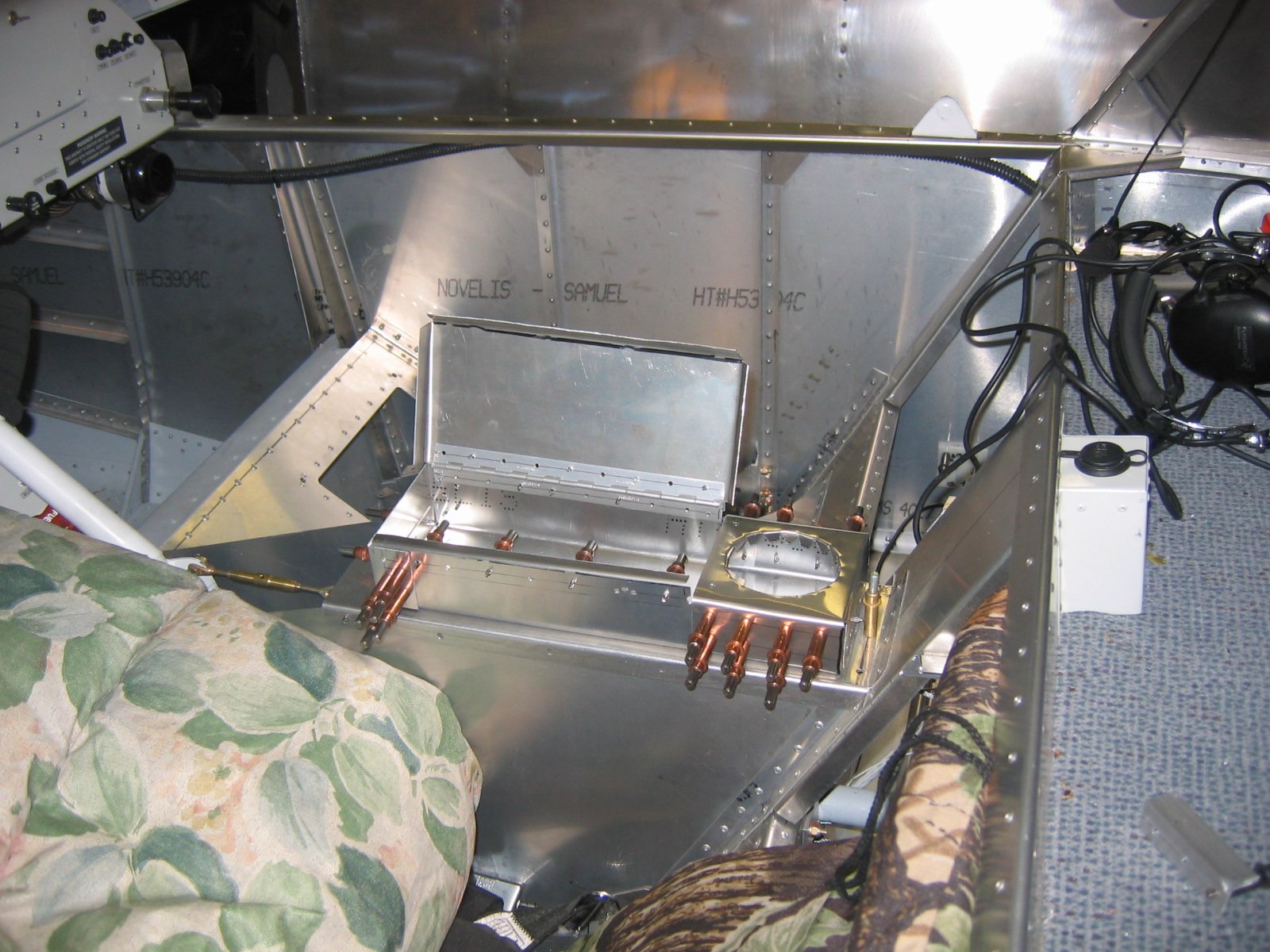 This is strictly a proof-of-concept idea, but here is an elbow rest/storage/drink holder box I fabricated. It seemed that with my seat cushion arrangement, that there was a blank spot between my elbow and the seal back channel where a bottle of water could sit. After I am flying, I will test fly the box and possibly refine the dimensions and either keep or scuttle the drink holder.