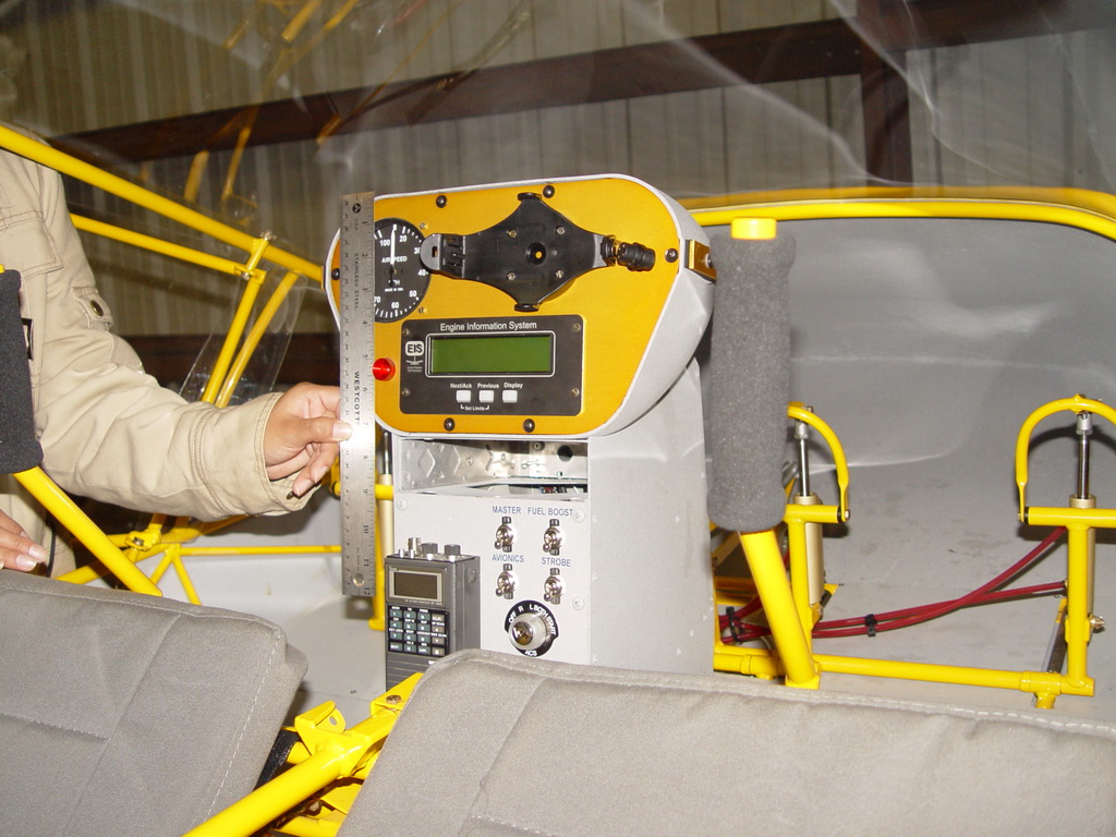 How much do you and your wife weigh together ? I have found that CG is more of a limiting factor than dead weight. You would not want to put anything heavy in the nose, but it would be perfect for coats, a couple sleeping bags, or other light but bulky items. Weight in the area behind the pilots actually helps the CG with 2 people, so heavy items should go there. These are old pictures, I am rerouted the fuel line in the picture that runs up from the tanks to access to the rear area I am talking about. For the type of flying you are talking about, the Kolb MK III is a great plane with unmatched visibility.