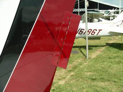 [img]cid:image002.jpg(at)01C9009F.59C03AA0[/img]The Cirrus has a 2.5" by 8" tab riveted to one side of the rudder.