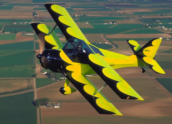 I am not a fan of biplanes, but that is one cool looking Kitfox ! I love the colors, that is the paint job I am going to do on mine, black scallops over cub yellow