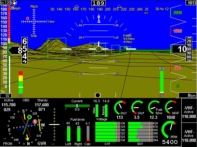 indicator, winds, HSI, GVOR, 3D moving map GPS. You have many choices