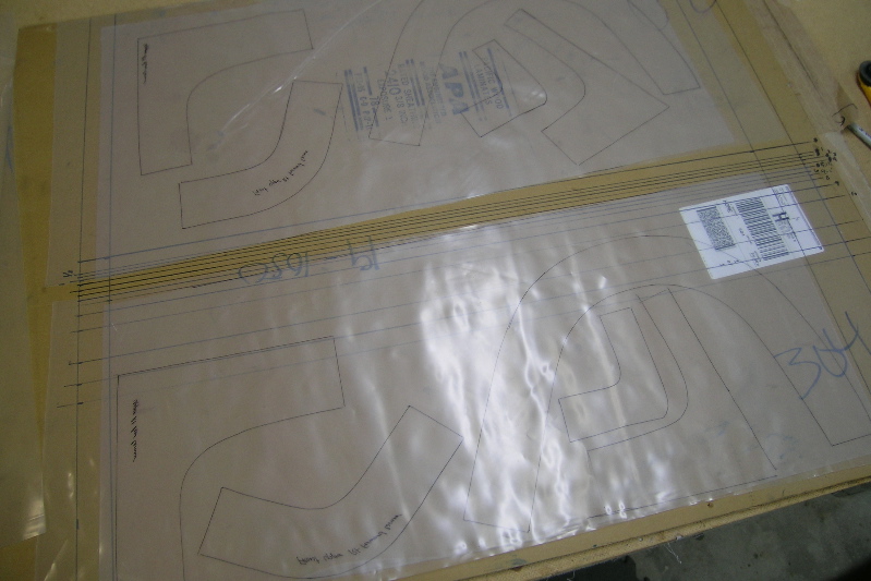 Place the appropriate size of fiberglass cloth on the backing piece and squegee resin into the cloth, lay the other piece with the tracing on top and use a clean squegee to join the top plastic drop cloth to the sandwich.