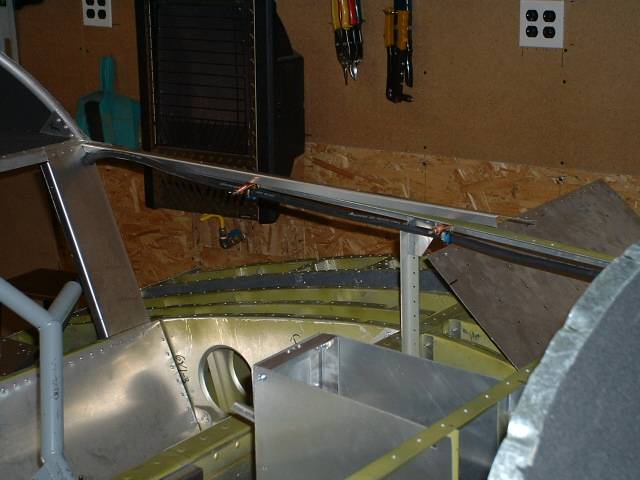Longeron run. The cable is temporarily mounted using Adel clamps. I'll eventually use cable ties for a neater installation.
