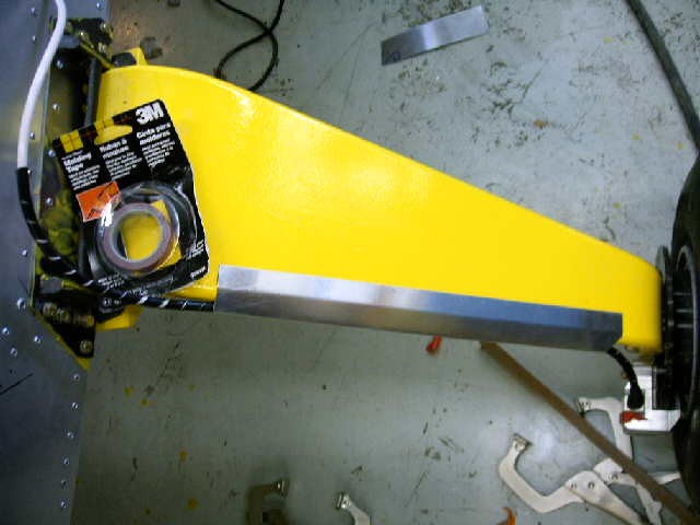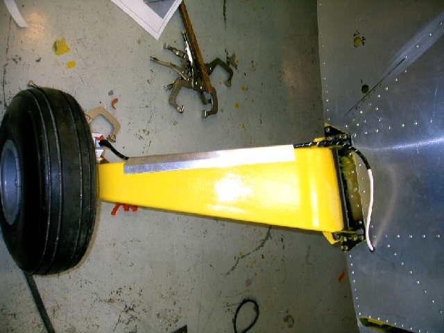 <?xml:namespace prefix="v" /><?xml:namespace prefix="o" /><![endif]--> Another guy in my hangar did this first, so I take no credit for the idea.. We "armored" the plastic tubes with lengths of 1/4 inch aluminum tubing, running it from secured points a few inches from the master cylinders, then bent the tubing as needed, until running it out the side and down the rear of the leg. A little flare at each end keeps the tubing from chafing. He used Adel clamps on his, but since I am using CZAW composite legs, I used a worm-drive band clamp at the top, courtesy of the aviation department at Ace Hardware, and a fabricated standoff at the bottom of the leg. Looks better than naked plastic tubing, and protects from rocks. It's easier if you run the plastic into the tubing before bending.