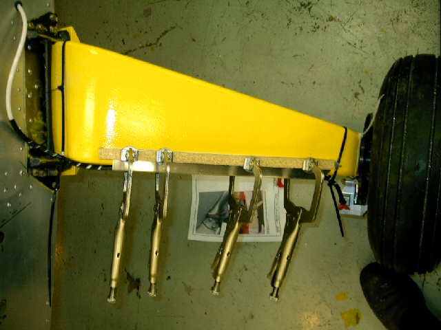 Attached is how I did mine. I procured the 3M double sided automotive trim tape from the aeroplane parts section of the local WalMart. (I ran the brake lines through the center spar, adel clamped going in and coming out and with ribbed conduit to prevent any chaffing/interference. Grommet through the side skins.