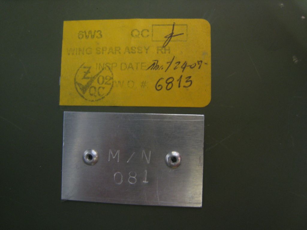 I've attached pictures of the three spar data plates and paper labels from