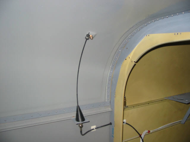 I put my ELT antenna in the right aft corner of the baggage compartment. I riveted a small .063 plate with a hole in it onto the .125" aluminum angle. I attached the antenna to that plate. I glassed an AN3 bolt onto the inside of the canopy top just above and used this to bolt on a cushioned clamp that secures the top end of the antenna. Since my ELT is just behind the baggage compartment bulkhead there, the antenna wire run is all of about 3'.