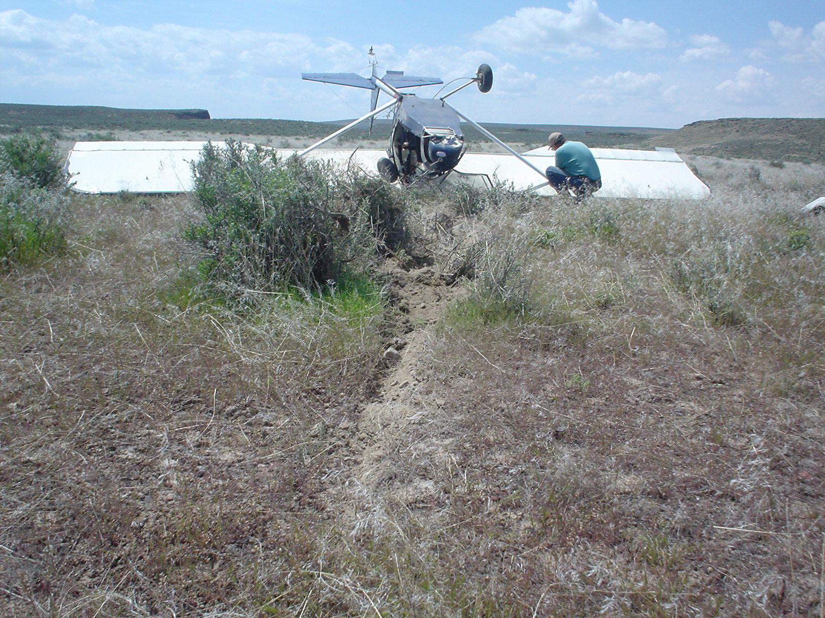 | One of the pictures is the plane the other is the skid mark where the broken leg dug in. |