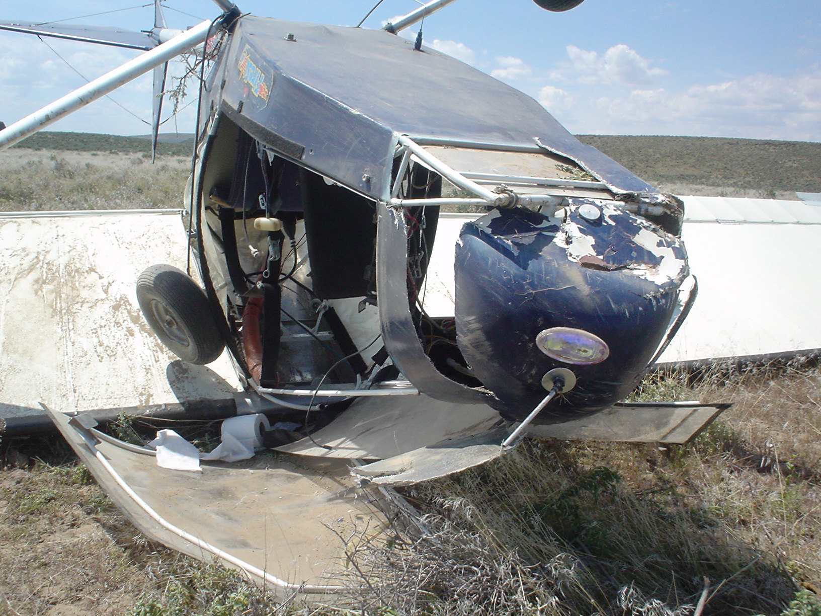 I finally got some of the pictures from my mishap so I will include them. The only damage to the plane is the nose bowl and the piece that the rudder pedals fit over on the front of the cage. I decided that I was going to recover the plane as the fabric is more than 10 years old and we actually managed to damage the fabric bringing it out of the area that I landed in. It was a good decision as the fabric was not in good conditon at all. I will of course need a new enclosure.