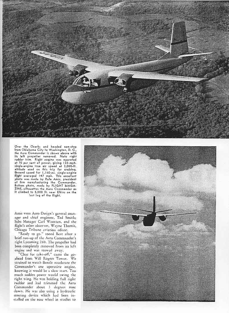 | Quote: | Rats! 09 May was the 55 year anniversary of the Aero Commander's singe engine flight from Oklahoma to Washington, D.C.