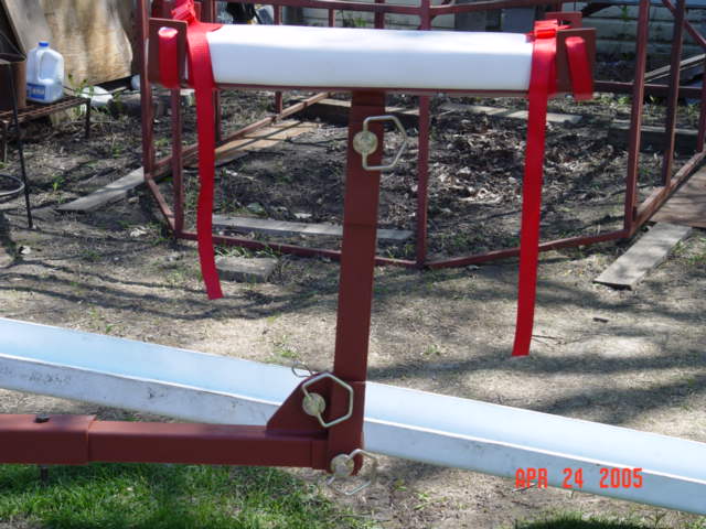 I also was proud of my creation with an electric hoist for $50 from Harbor Freight....works great btw, and built up platforms on the back by all weather wood.....my son LOVES to work in wood...and the plane was dragged up ramps backwards to a hinged stanchion which when one pulled the cord, would come up and cradle the boom on its carpet, and hold it up off the tail wheel. The backwards wings were noproblem at all as they were covered with a nonpenetrating $12 canvas like tarp and sewed masculinely on one side. Masculine means that the stitches were at least 3/4 inch with heavy thread....cord was more like it. Only took an hour to sew it and it totally closed air off from entering the area of the wingtips and tail. MORE CREATIVITY!.........YEAH!